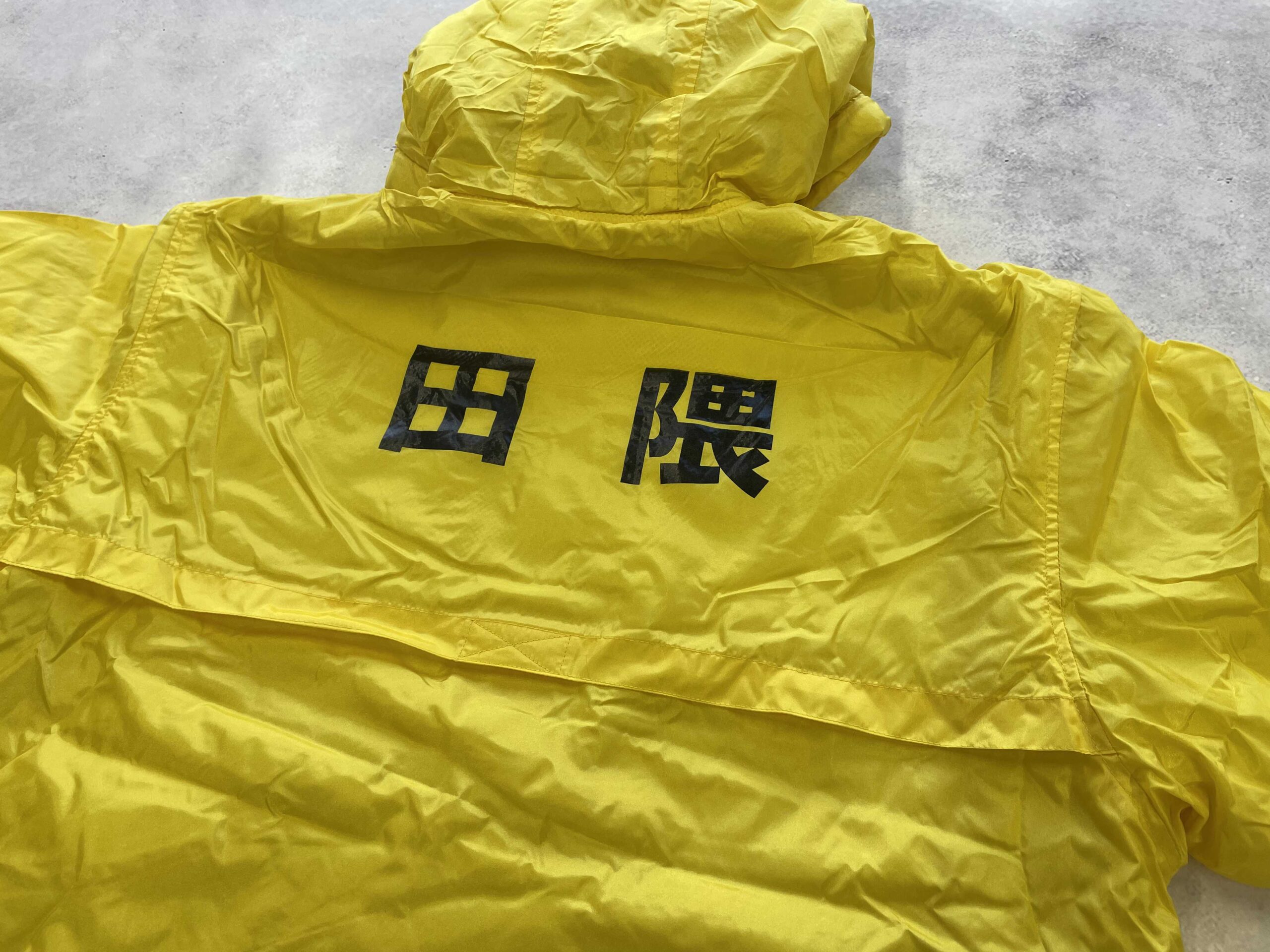 黄色のオリジナルキャップと防寒コート の制作をご依頼いただきました。