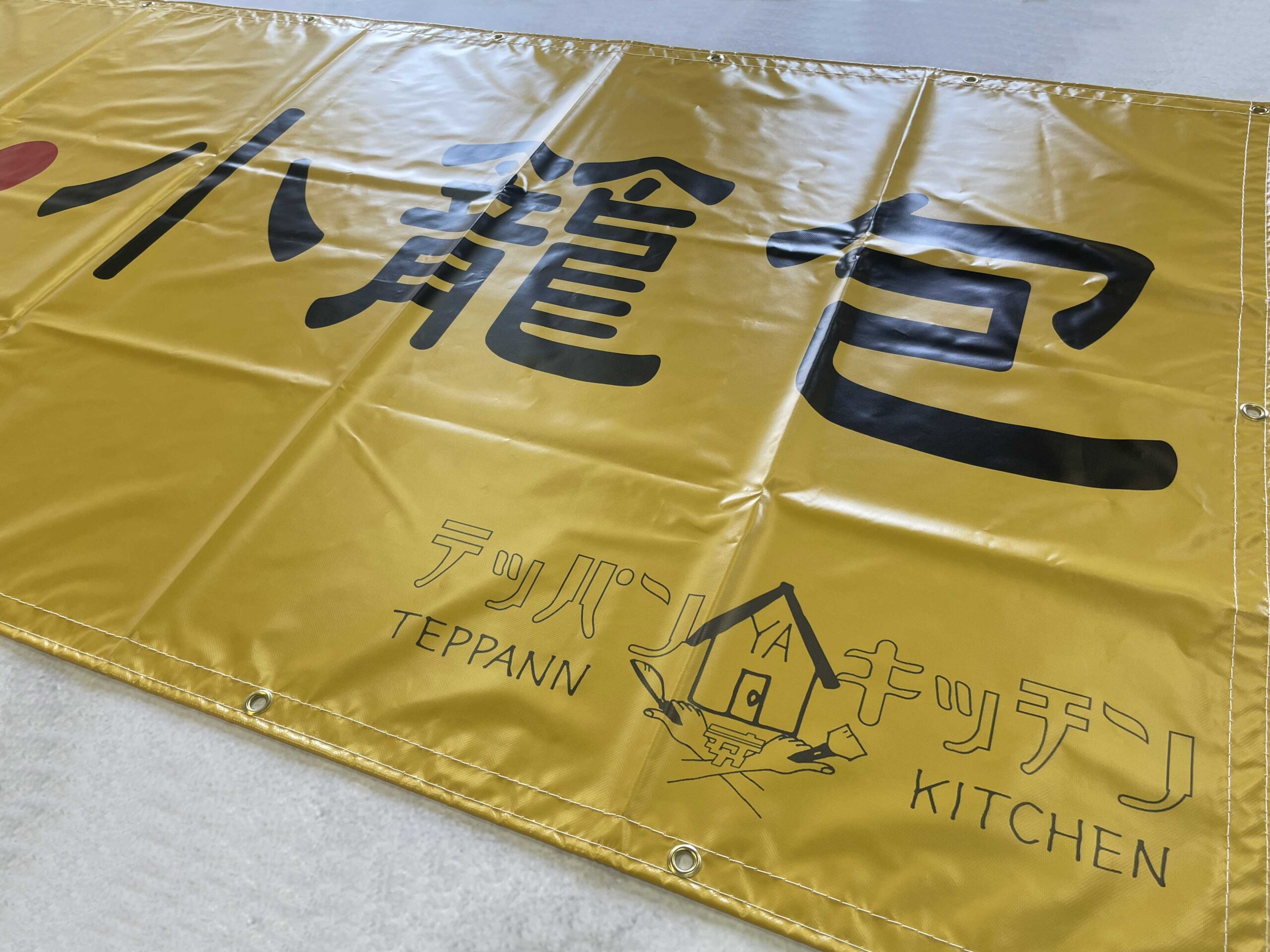 福岡市・西新エリアで多くのファンに愛されている居酒屋 「テッパン屋キッチン」様 より、屋外イベントで使用される オリジナル横断幕 の制作をご依頼いただきました。