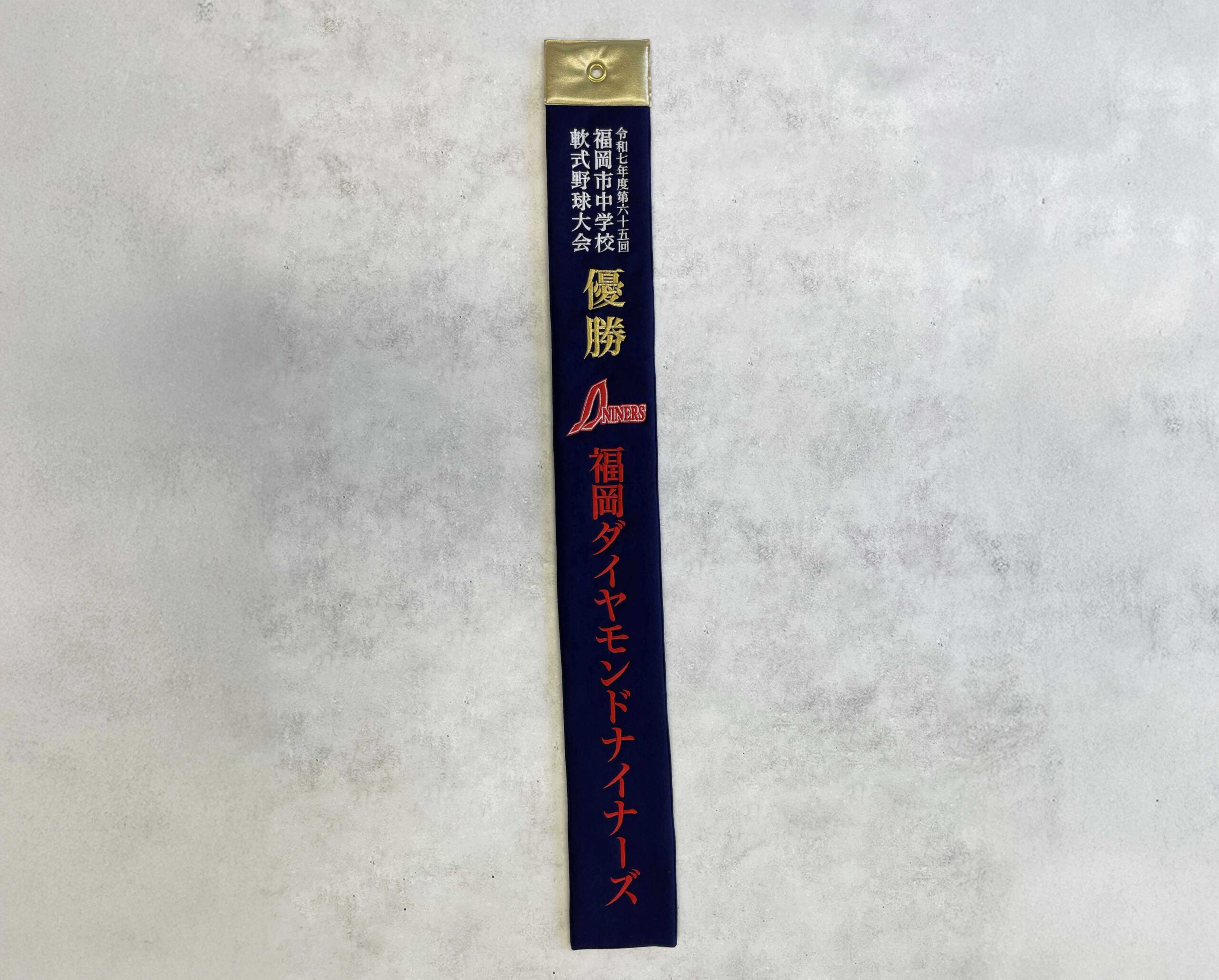 いつも Tシャツや応援幕の制作 をご依頼いただいている福岡ダイヤモンドナイナーズ様 より、優勝旗・優勝カップ用のペナント制作 のご依頼をいただきました。