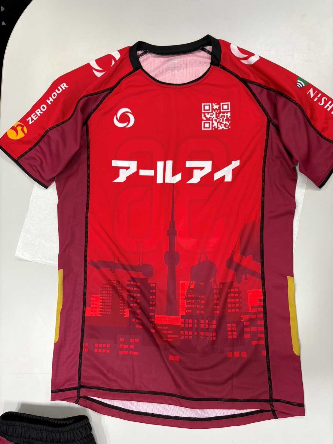 埼玉県で大型建設に使用されるクレーン用吊り治具を扱う アールアイ株式会社様 からのご依頼で、社内フットサルチームの発足に合わせた オリジナルフットサルユニフォーム を制作いたしました。今回は「他にはない自社らしさを表現したい」という明確なコンセプトがあり、アールアイ様が手掛けられた 東京スカイツリーをはじめとする大型建築物のイラスト や、関連企業の スポンサー ロゴ をユニフォーム全体に散りばめたオリジナルデザインをご提案。着るだけでチームの一体感が生まれる特別なユニフォームに仕上がっています。