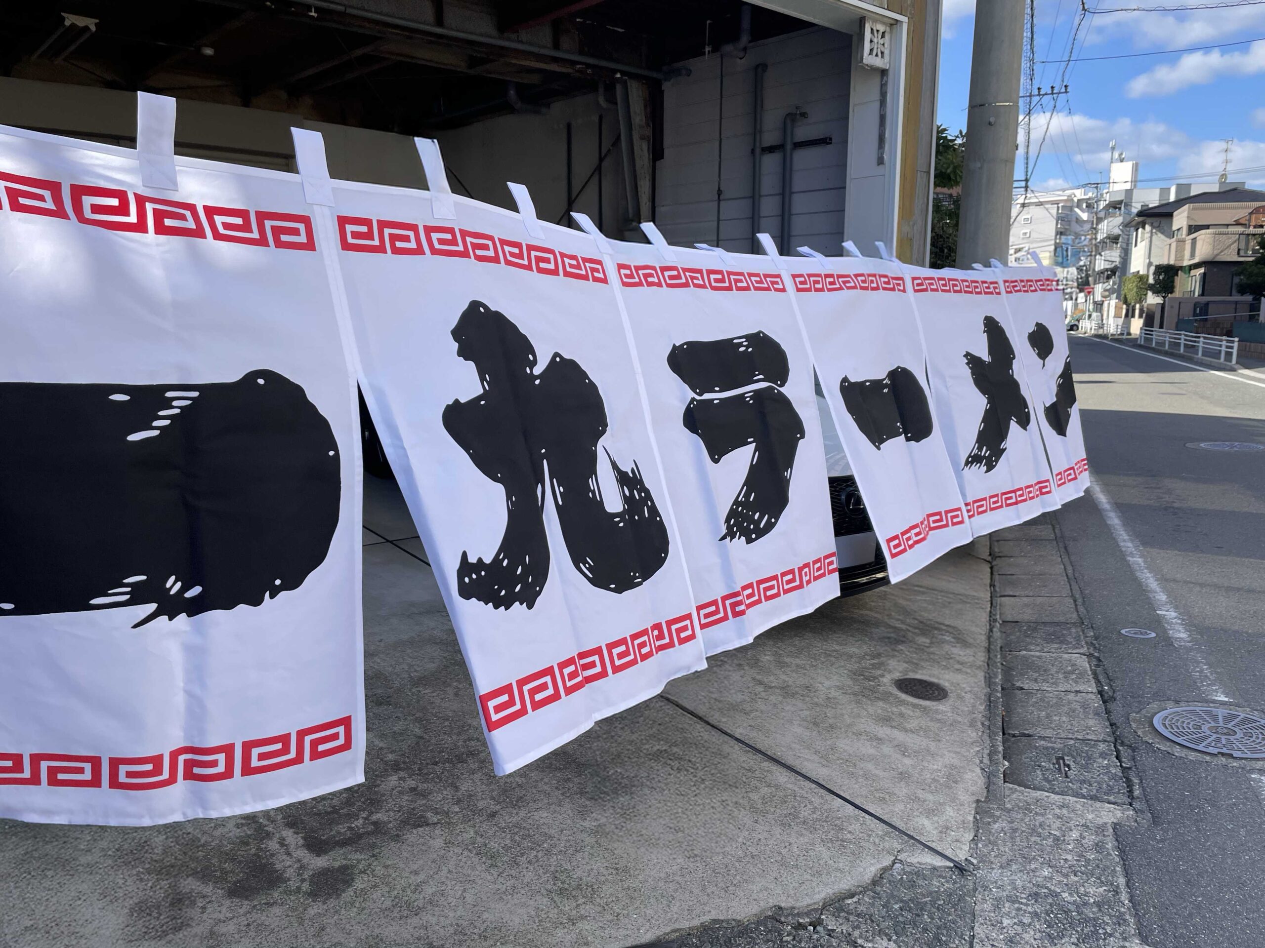 福岡で長年愛される「一九ラーメン 本店」様より、店頭および店内で使用される暖簾(のれん)制作をご依頼いただきました。今回は、店舗の印象を左右する3点の暖簾を製作しています。