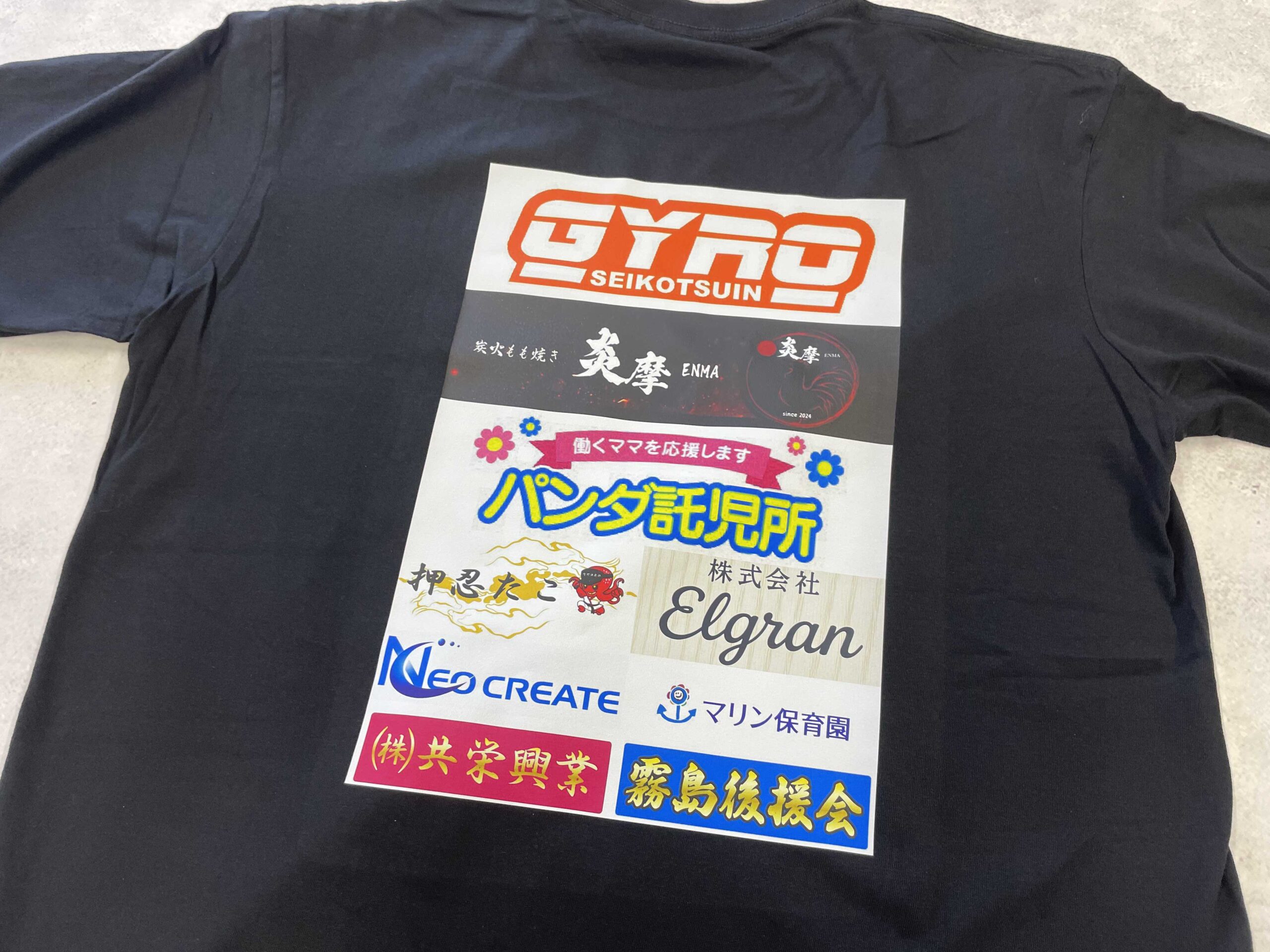 今回は小ロットでの制作であったため、版の作成コストが必要なシルクスクリーン印刷ではなく、少量生産に最適な DTFプリント(フルカラー印刷) を採用。DTFは細かな文字や複雑なロゴも鮮明に表現でき、色の再現性も高いことから、スポンサー様のロゴをクリアに見せたい今回の用途には非常に相性の良い加工方法です。