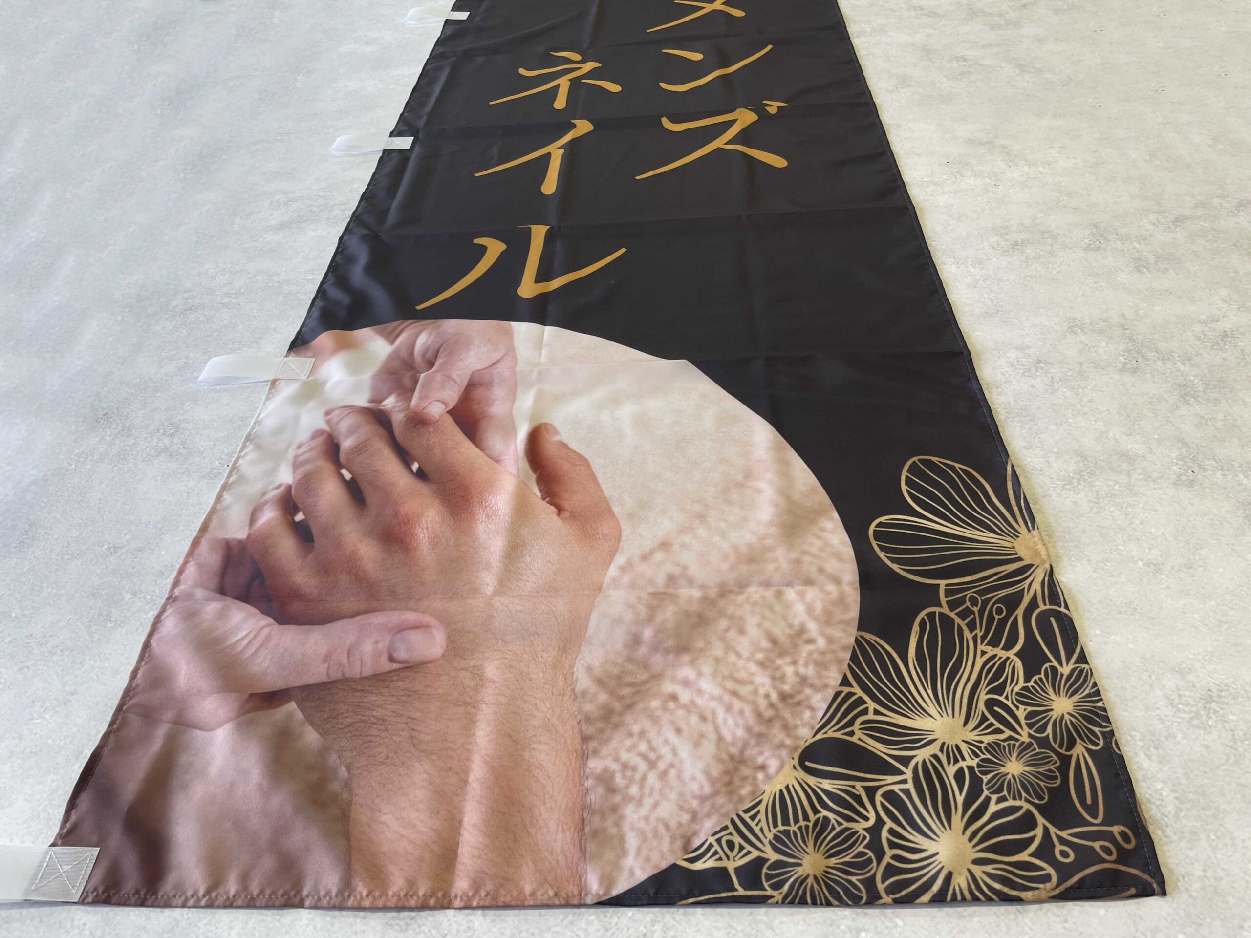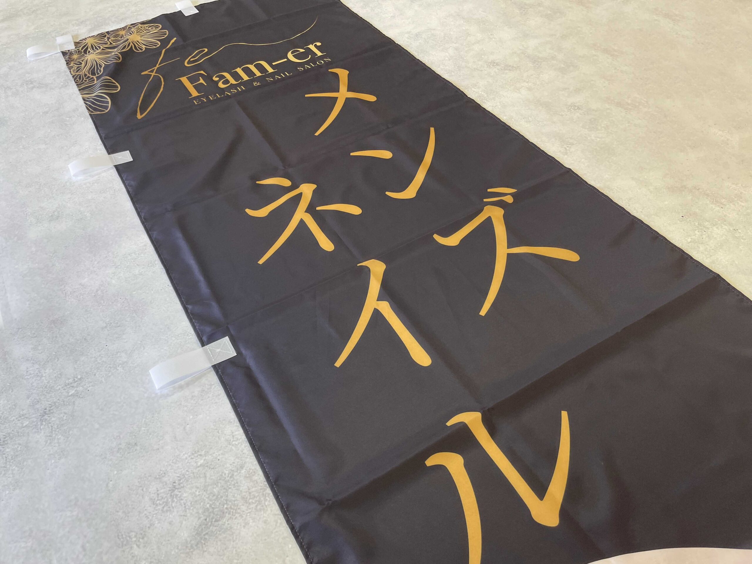 福岡県・大分県でアイラッシュサロン・ネイルサロンを複数店舗展開されている Fam-er様 より、店舗前や店内装飾として使用される オリジナルのぼり制作 のご依頼をいただきました。