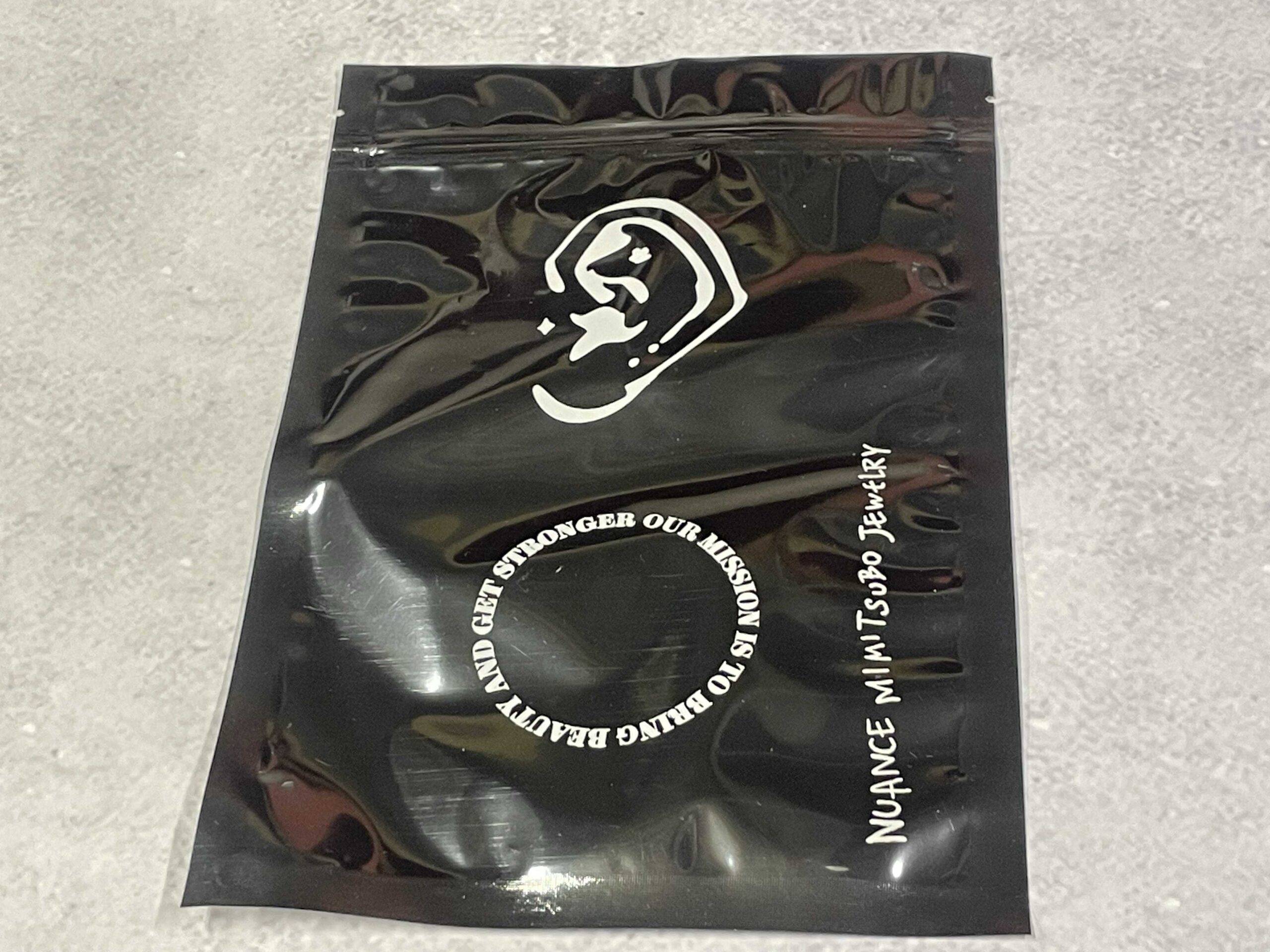 福岡市で美容サロンや関連グッズを幅広く展開されている OFF WHITE様 より、耳つぼジュエリー用の オリジナルパッケージ袋 の制作依頼をいただきました。
