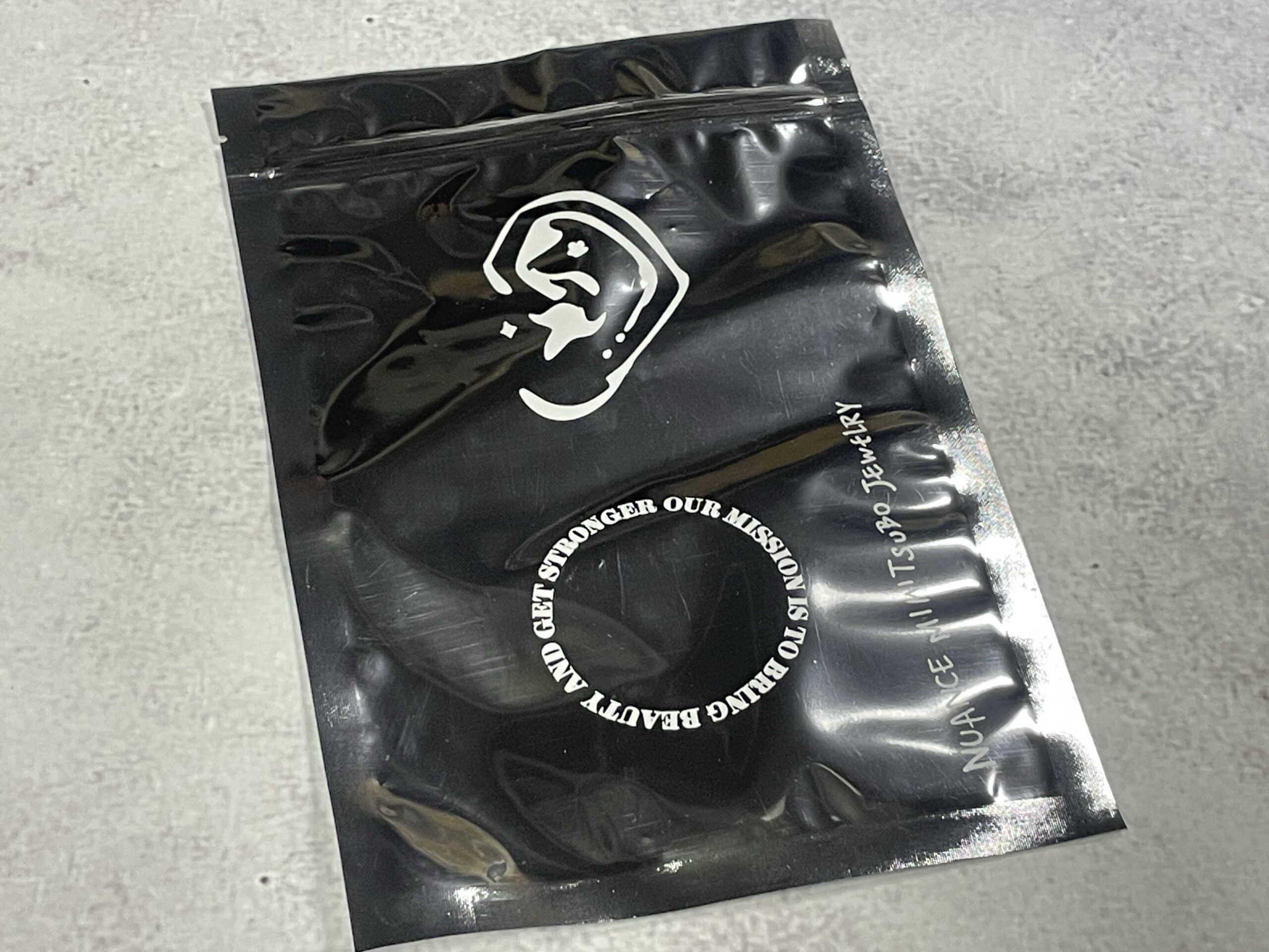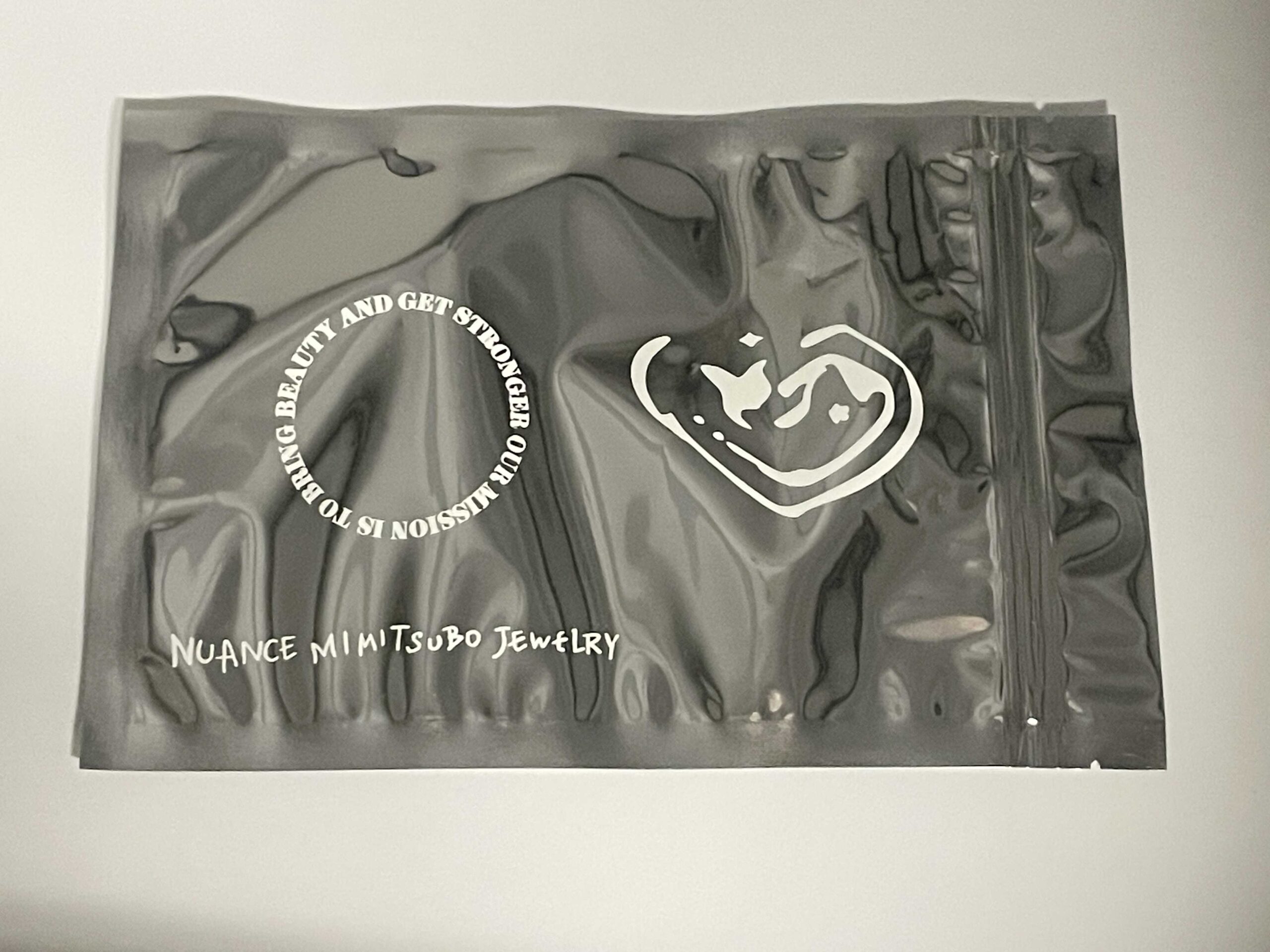 福岡市で美容サロンや関連グッズを幅広く展開されている OFF WHITE様 より、耳つぼジュエリー用の オリジナルパッケージ袋 の制作依頼をいただきました。